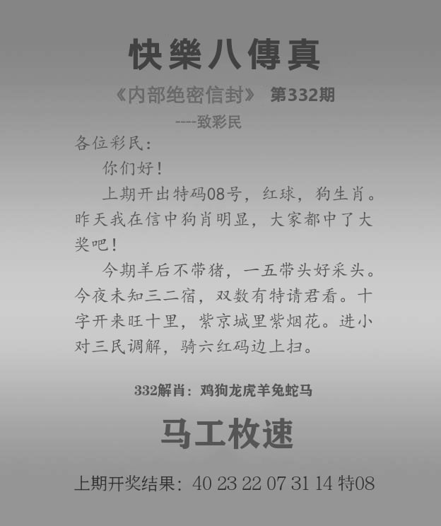 332期澳门506〖九肖十码〗506676.COM 九肖:马虎羊鸡蛇狗猪龙兔 ⑩码:24 48 04 16 23 47 33 45 13 49 六肖:马虎羊鸡蛇狗 ⑧码:24 48 04 16 23 47 33 45 四肖:马虎羊鸡 ④码:24 48 04 16 澳门六合活动进行中站长担保 点击投注